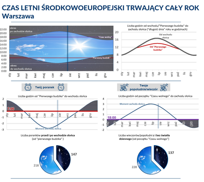 Proponuję zatem wprowadzić czas letni na 3 lata a następnie sprawdzić czy po tym czasie Polacy dalej będą chcieli go utrzymać. Zmiana czasu ma spowodować lepsze wykorzystanie światła dziennego. W ostatnią niedzielę marca po pięciu miesiącach czasu zimowego przestawiamy zegarki o godzinę do przodu z 200 na 300. Noc z soboty na niedzielę będzie dłuższa o godzinę.